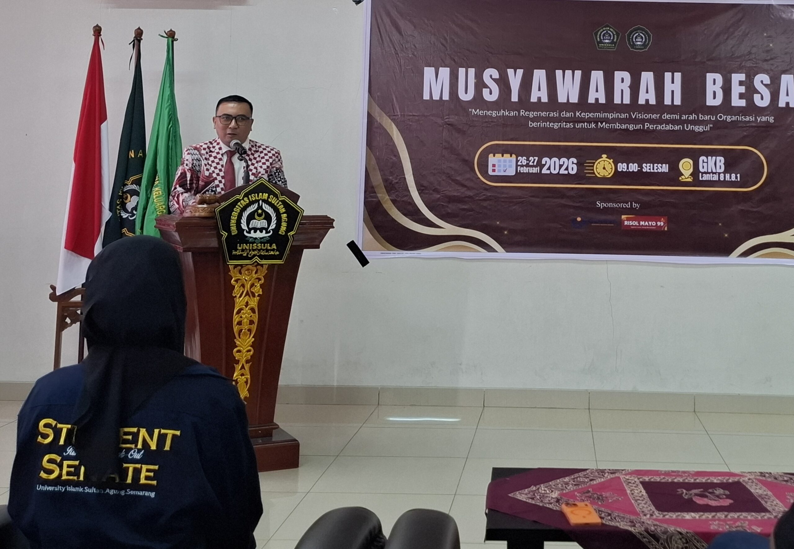 Senat Mahasiswa Keluarga Mahasiswa (Sema KM) Unissula menggelar musyawarah besar dalam rangka regenerasi kepemimpinan. Mubes berlangsung 26-27 Februari 2026 di Ruang Rapat Biro Rerktor Lt.3. Mubes secara resmi dibuka oleh Wakil Rektor 3 Unissula Dr Achmad Arifulloh SH MH, Kamis (26/2/2026). “Saya memberikan apresiasi kepada Ketua Sema KM yang telah menyelenggarakan mubes di akhir masa jabatannya,” ungkapnya.
