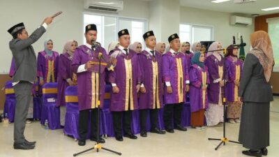Rektor Unissula Prof Dr Gunarto SH MH melantik pengurus baru Senat Mahasiswa dan Badan Eksekutif Mahasiswa (BEM) Keluarga Mahasiswa Unissula periode 2026/2027, Kamis (9/4/2026). Adapun mereka yang dilantik Ketua Umum Senat Mahasiswa Nabil Awalu Mubarak, Wakil Ketua Umum Rosma Ayu, Sekretaris Jenderal Hani Azizah, dan Bendahara Umum Rocky Satria. Sedangkan sebagai Ketua Umum BEM Andis Fatah Saputra, Wakil Ketua Umum M Thoriq Awabim, Sekretaris Kabinet Ugalih Pujo Dwi Utami dan Bendahara Umum Nikmatul Latifah.
