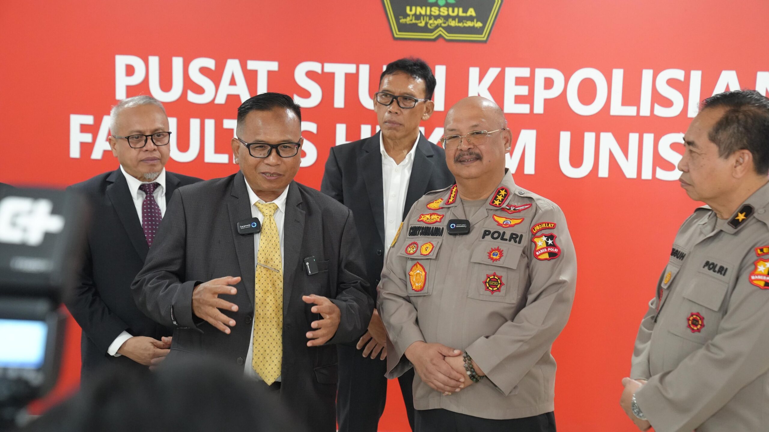 Fakultas Hukum Unissula bersama Polda Jateng meresmikan Gedung Pusat Studi Kepolisian yang berlokasi di Gedung Internasional Unissula Jalan Kaligawe Raya km. 4, Sabtu (29/11/2025). Peresmian ditandai dengan pemotongan pita oleh Rektor Unissula Prof Dr Gunarto SH MH, Dekan FH Unissula Prof Dr Jawade Hafidz SH MH bersama Komjen Pol Prof Dr Chryshnanda Dwilaksana MSi dan didampingi BrigjenTeguh.