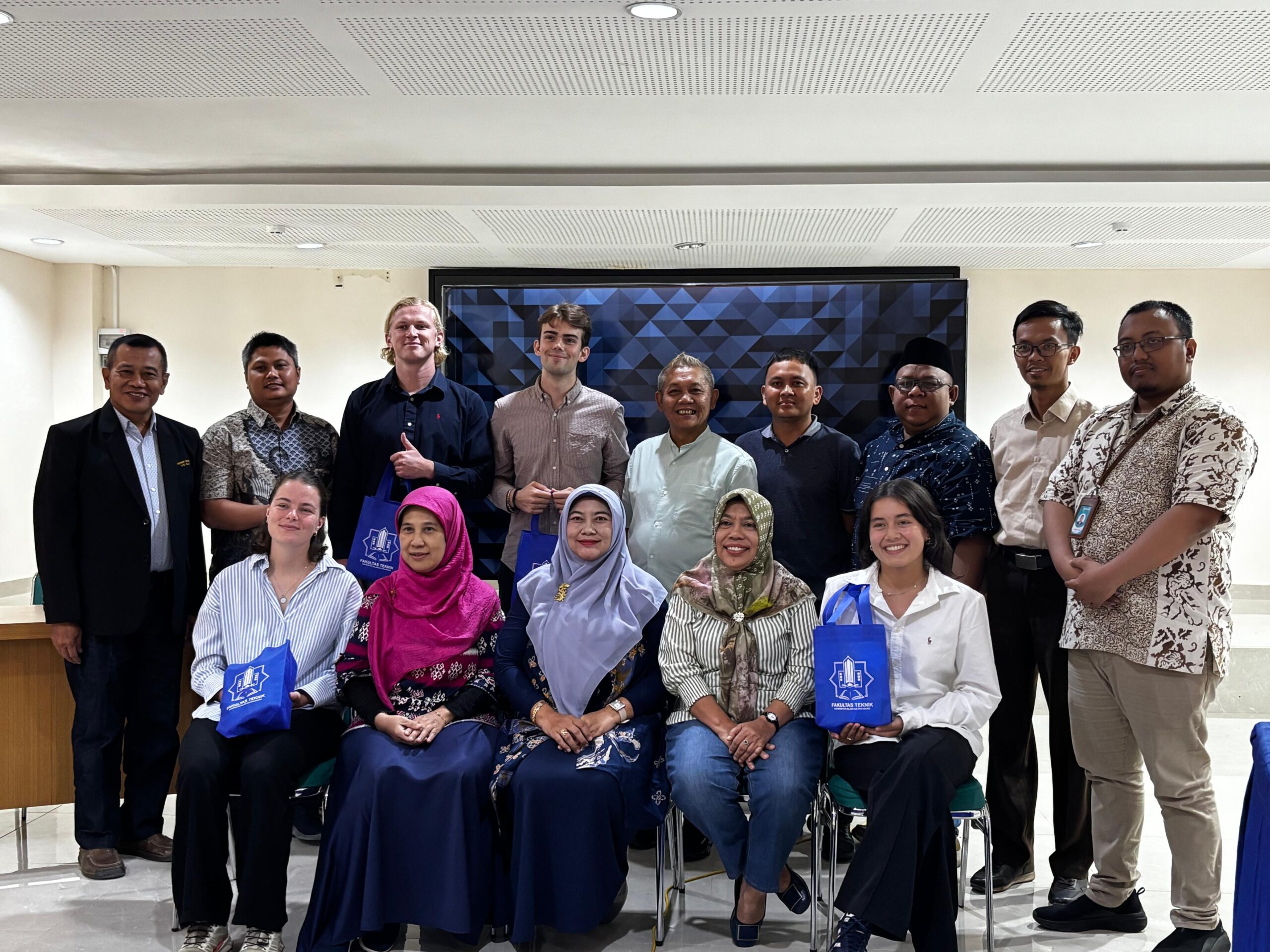 Tiga mahasiswa Rotterdam University of Applied Sciences mempresentasikan hasil penelitiannya di Demak dan Semarang, Jumat (12/12/2025). Mereka Sam de Haas, Natasha Boon, dan Heather Boeije telah menjalani program research internship / magang penelitian untuk tugas akhir kuliah di bawah bimbingan dosen Fakultas Teknik Unissula sejak 8 September 2025.