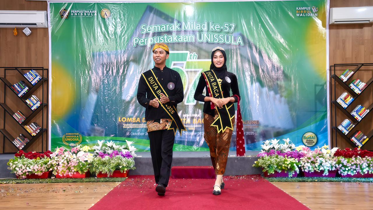 Mahasiswa Fakultas Ilmu Komunikasi (Fikom) Unissula Vina Marshella dan Muhammad Mikail Faqih terpilih menjadi duta baca Perpustakaan Unissula 2025. Pemilihan duta baca tersebut diselenggarakan bersamaan dengan rangkaian acara Semarak Milad UPT Perpustakaan yang ke- 57, Rabu (5/11/2025).